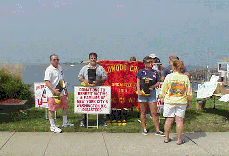 shift at the Seafarers gathering at Sunset Lake on Saturday, September 22, 2001. Donations were collected for the families of victims in the