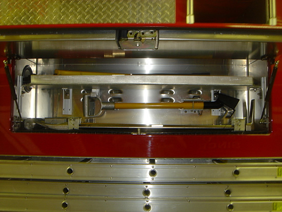 Upper Shelf 36" Bolt Cutters Pick Head Axe Lower Shelf 3-ft. Plaster Hook Sledge Hammer 42" Halligan Bar