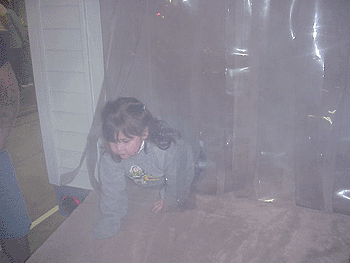 | A young Wildwood Crest girl exits the "Smoke House" after demonstrating the proper way to move through a smoke-filled room. |