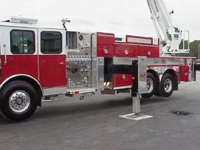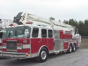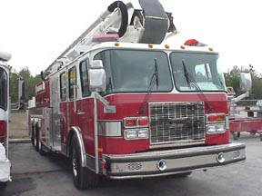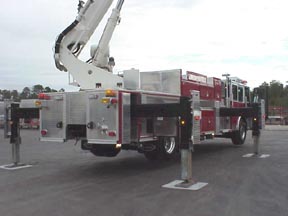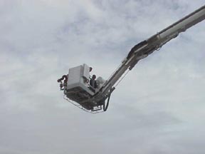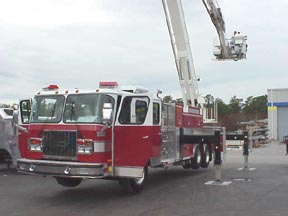 | In addition to it's 91-ft. boom, the truck has a 1500 gpm pump and 500 gal. water tank. | Asst. Chief Al Beers put the platform through various exercises. |