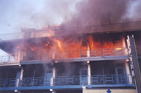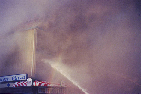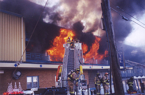 The fire spreads to Sam's Pizza on the Boardwalk end of the building: