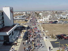The Phillie Phanatic, aboard Engine 437, led the procession from the Crest Tavern to the beach via Jefferson Ave. (Click photo to enlarge)