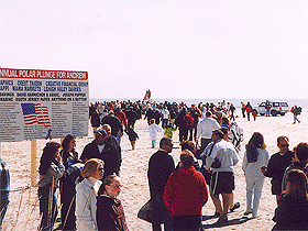 The Plungers enthusiastically get ready for their annual winter dash in the ocean.